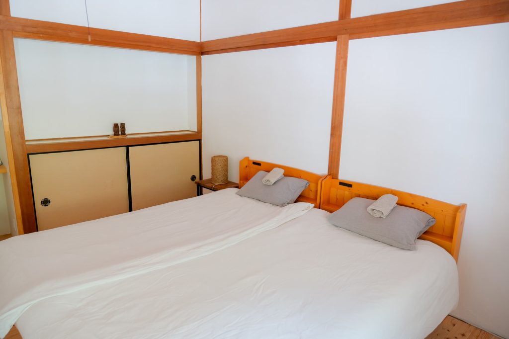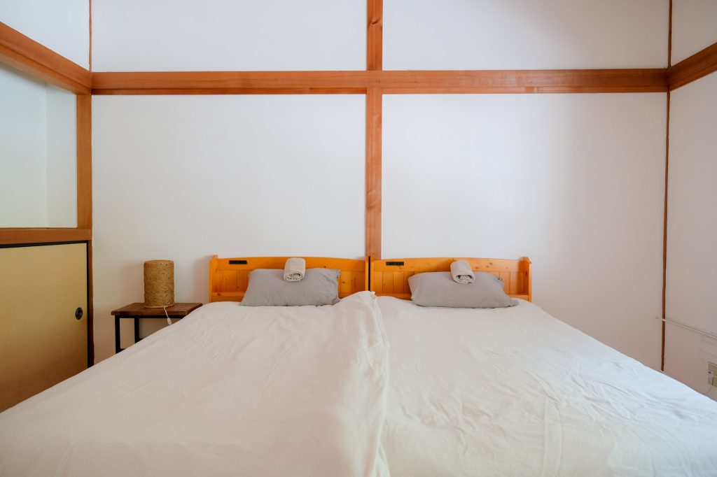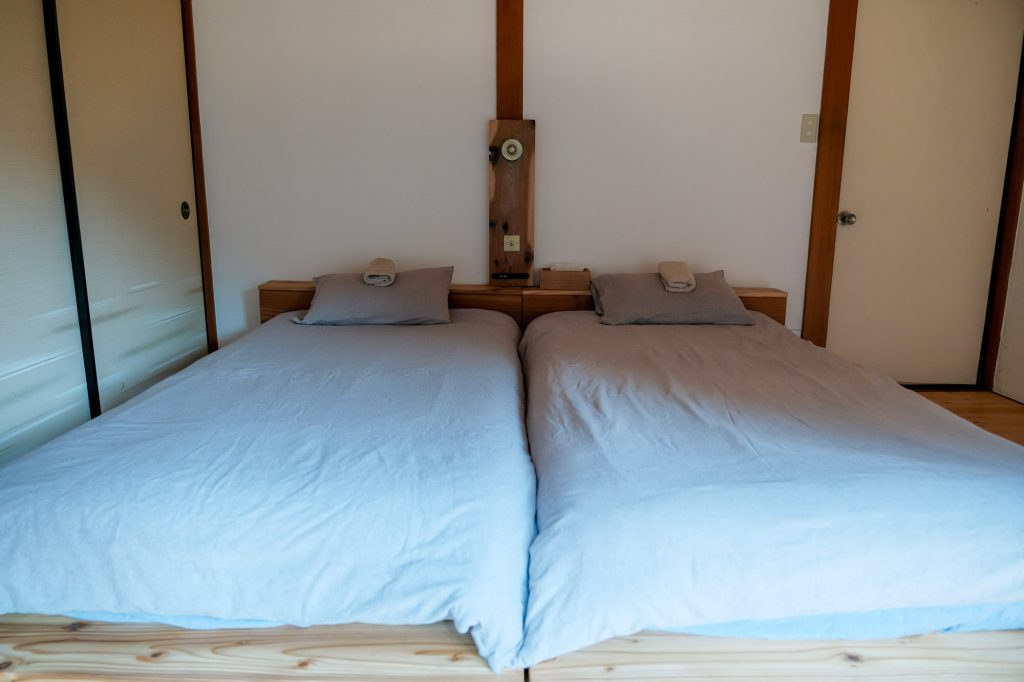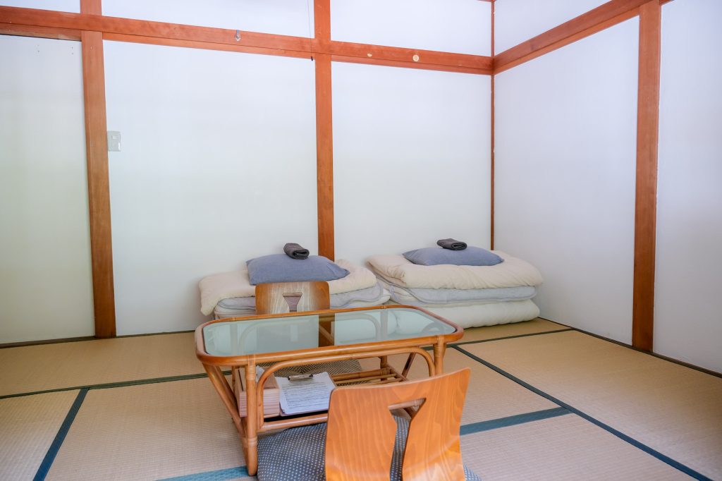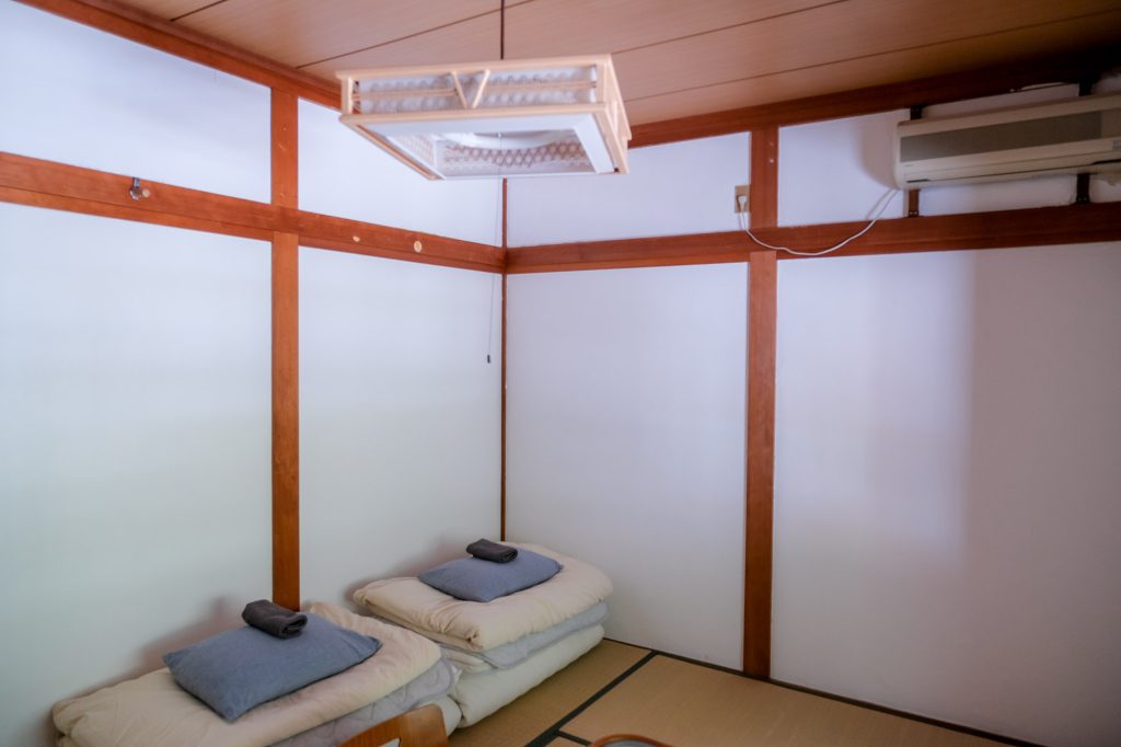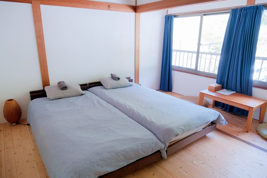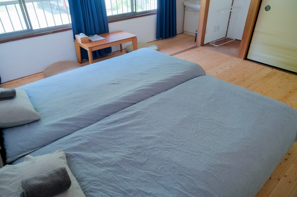 For 3 guests, two beds and one futon on the floor will be provided.