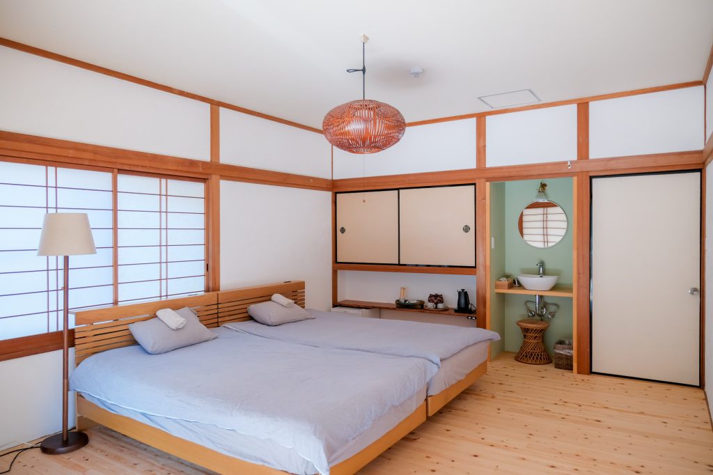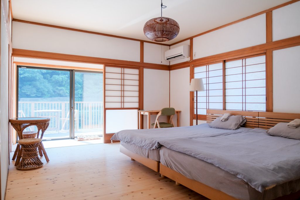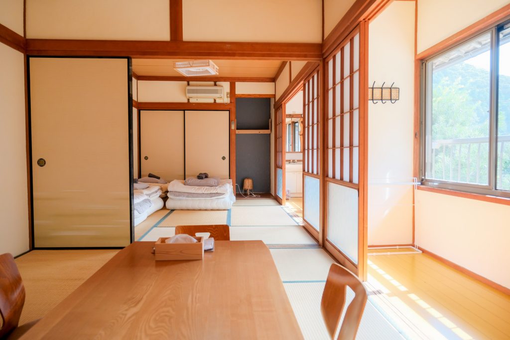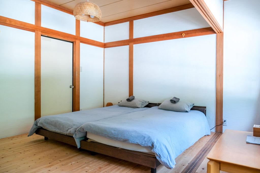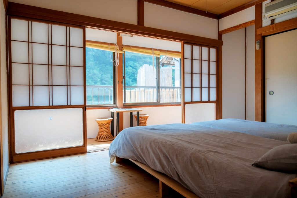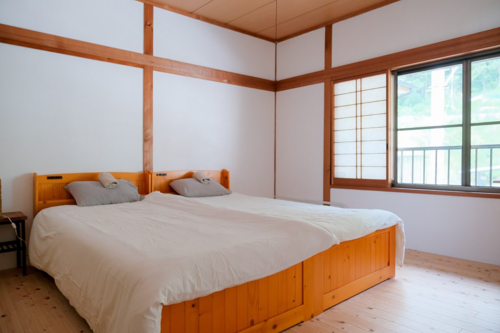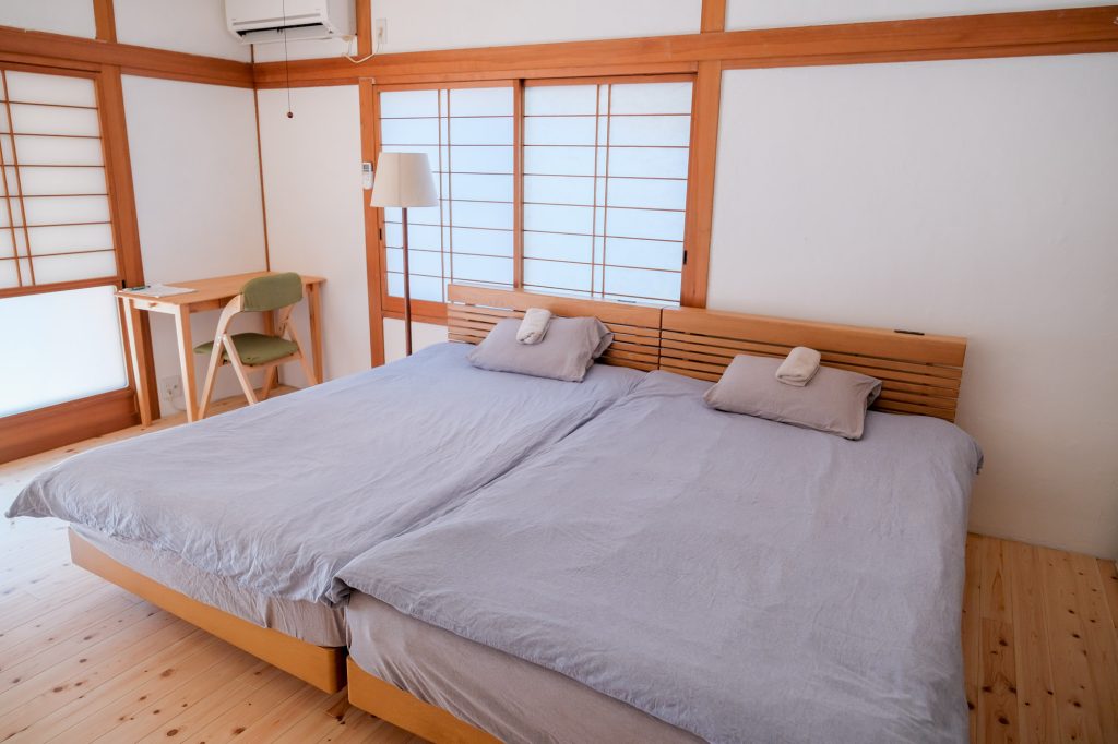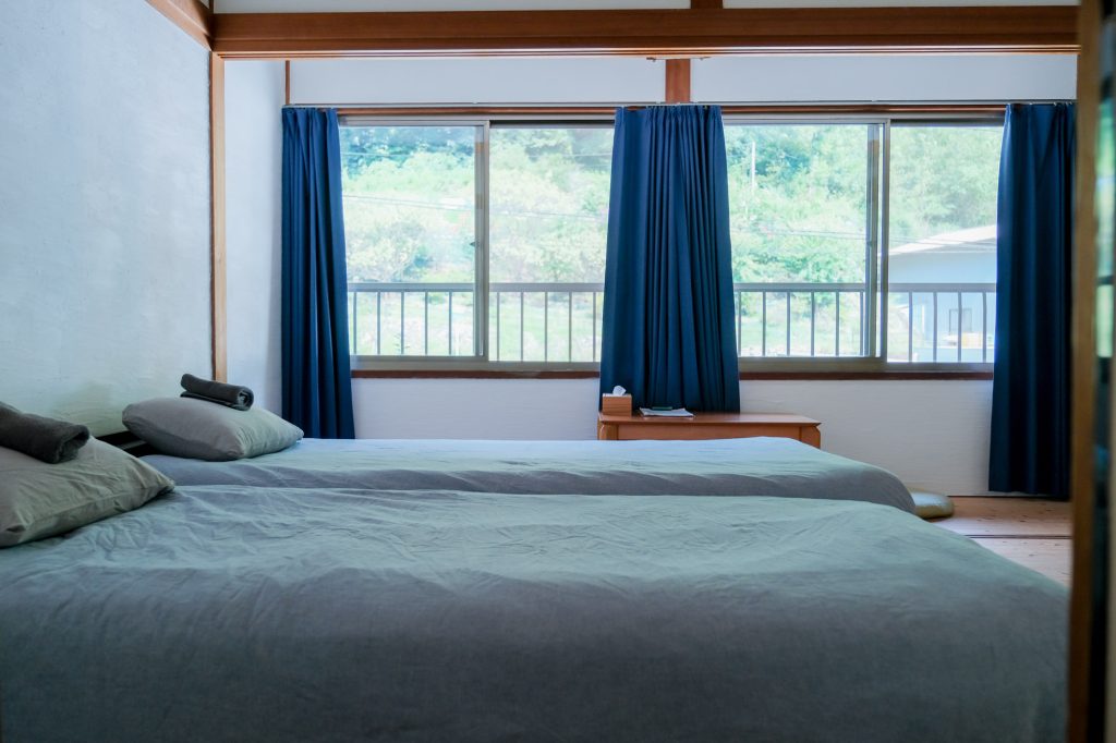 For 3 guests, two beds and one futon on the floor will be provided.